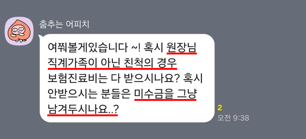 – 원장님 지인·가족 미수금